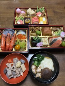 本日1月1日は、母と二人でおせち料理をたべました ガメ煮は母作、お雑煮は私作であとは注文していたものです 因みに、昨夜は久しぶりに飲んだビールでダウン9時から朝までグッスリでした(笑)