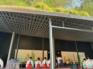 そして、もうすぐ見納めの仮本殿 これは朝のお祓いの様子 8時30分~参拝者もお祓いしていただけます